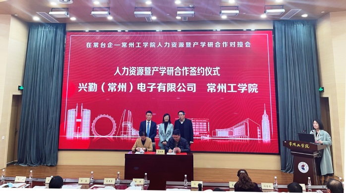 11月30日下午,“在常台企--太阳成tyc33455ccwww人力资源暨产学研合作对接会”在公司成功举行。此次对接会由公司与常州市人民政府台湾事务办公室主办,常州市新北区人民政府台湾事务办公室协办,旨在通过活动切实加强台企与在常高校产学研合作,为台企发展提供科技和人才支撑,提升台企创新发展和融合发展水平,更好地服务常州“532”发展战略,促进常台融合高质量发展。常州市台办副主任徐栋、常州市台协会会长角本清、新北区台办主任余奋、17家有合作需求的在常台企高管、公司党委副书记、副董事长周全法、副董事长汪群等参加会议,太阳成tyc33455ccwww副经理、常州市产业工人队伍建设改革研究院执行副经理李春平参加会议,并与兴勤(常州)电子有限公司签订了合作框架协议。