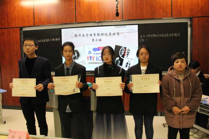 最佳风度辩手:21管一方潇、21商务一范玮琪、21管二吴静、21贸一李璞颖、21贸二刘雨 暄、21物管二巫人杰
