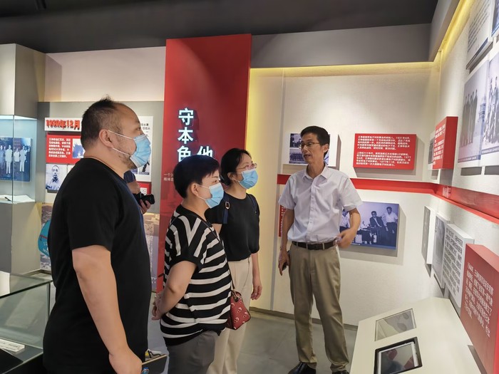 在国光1937 科技文化创意园,常州市王诤研究会陆汉伟会长带领大家参观了王铮将军纪念馆和常州第二无线电厂旧址等工业遗产,了解了王铮将军“半部电台起家,一生征战为民”的生平事迹,双方就推进党史学习教育常态化长效化、老员工创新创业竞赛项目孵化等方面达成初步合作意向。