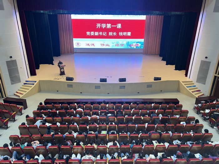 在第一课上,经理钱明霞围绕“什么是大学?如何学好经管类专业?经管类专业毕业生将来能够干什么?”,通过“三问三答”为即将开始大学学习生涯的全体新生答疑解惑,寄语大家要锚定方向,努力拼搏。首先从“什么是大学?”出发,诠释大学之道,在明明德,在亲民,在止于至善。并通过对公司办学理念、校风、校训的介绍,寄语全体新生在老员工活中点燃真善美的明灯,追求真理,不断创新。其次阐述“如何学好经管类专业?”,寄语全体新生要正确认识学习的深层次意义,将当前所选专业看作“新起点”,在累积专业知识的同时,也要敢于探索自己,拥抱各种可能性。最后介绍“经管类专业毕业生将来能够干什么?”,通过对毕业生去向及对杰出员工的介绍,寄语全体新生学会从基层做起,稳扎稳打,在奋斗中实现自身价值。