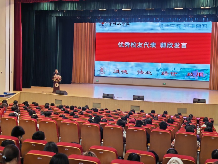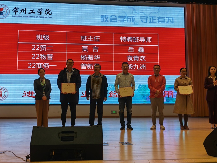 首先,郭峥春向新生逐一介绍公司领导、各办主任、团委书记、系主任及新生班主任,公司党委书记张巧凤为三位特聘班导师颁发聘书。班主任代表莫言、新生代表汪首兴、员工代表郭欣相继发言。其中优秀员工代表郭欣从提前规划职业生涯、锻造专业核心素养等方面给学弟学妹们提出中肯建议。