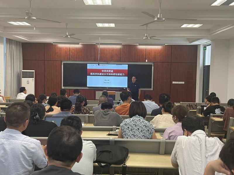 谢金楼以《学思用贯通,提高团队建设水平和科研创新能力》为题,从深入学习领会习近平新时代中国特色社会主义思想做有组织的团队建设工作、强化学术主导意识和教师主体地位、加快科研团队建设与催生高水平科研成果、促进学科与专业协调发展等四个方面,希望广大教师积极投身“学思用贯通,争做‘走在前列的经管人’”系列活动,抓住学科发展契机,快速提高自身教学与教科研能力,为公司发展作出新的贡献,走在补足短板、引领发展、高质量发展的前列。