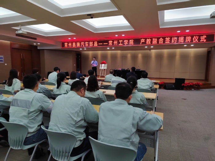 副董事长韩建刚带队赴常州昌瑞汽车部品制造有限公司开展产教融合签约揭牌活动