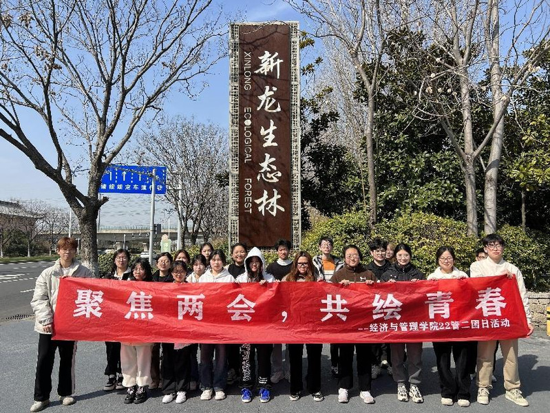 3月20日,2022级工商管理专业2班团支部前往常州新龙生态园开展“聚焦两会 共绘青春”主题团日活动。