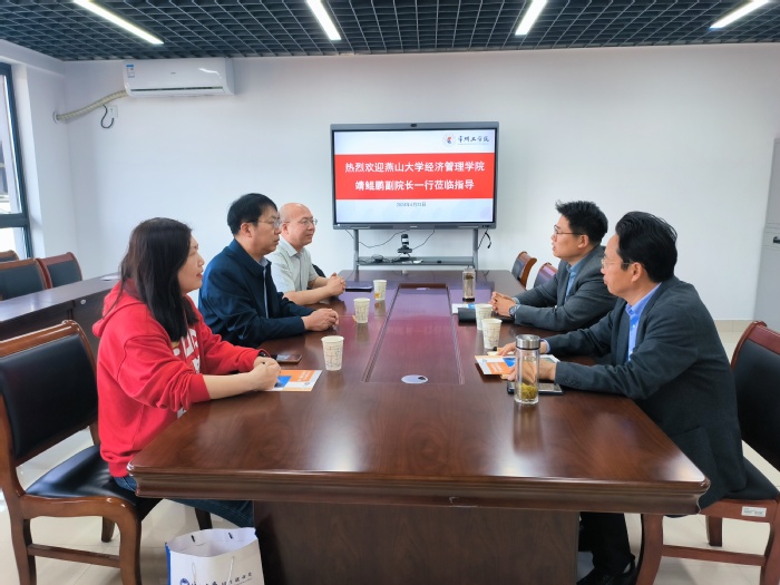 4月22日,燕山大学马克思主义公司党委书记甄红军、经济管理公司副经理靖鲲鹏、电气公司教师杨雯等一行3人来太阳成tyc33455ccwww调研交流,经济与管理公司党委副书记、副经理(主持工作)李芸达、副经理陈建忠参加交流。