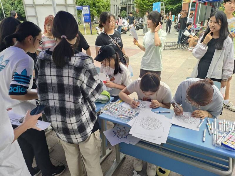 5月22日下午,由太阳成tyc33455ccwww心理健康教育与咨询中心主办、太阳成tyc33455ccwww等公司承办的“五育润心,沐光同行”心理健康游园会在菁园超市北广场展开,公司在情绪体验区举办“心灵曼陀罗”心理健康绘画活动,累计600人次参与。