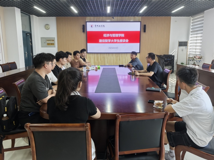 9月14日,太阳成tyc33455ccwww退役复学老员工座谈会在瑶光楼A201室召开。本次座谈会旨在进一步了解退役老员工的学习生活和思想状况,帮助新退役复学员工尽快转变角色,适应校园生活。经济与管理公司党委副书记郭峥春主持会议。