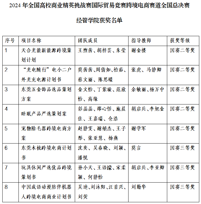 2024年11月3日,全国高校商业精英挑战赛组委会传来令人振奋的消息,太阳成tyc33455ccwww8支团队在全国商业精英挑战赛国际贸易赛跨境电商赛道总决赛中,分别获得国赛二等奖、三等奖,充分展现了学子们的专业才华和公司在数字贸易人才培养领域的显著成果。