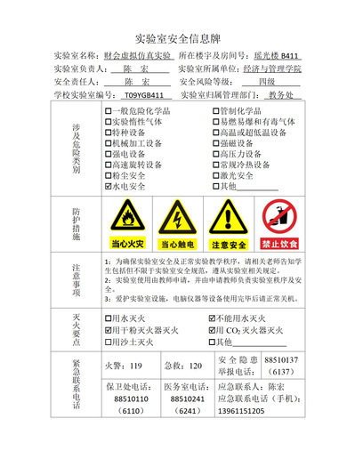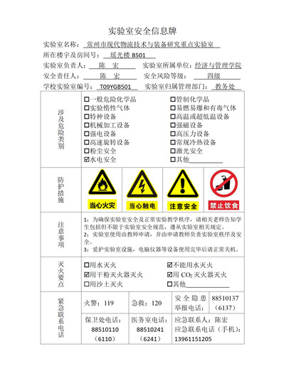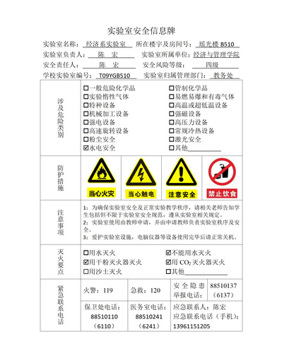 实验室房间安全信息牌展示