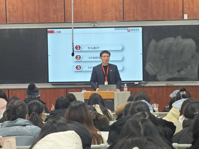 为落实“双进行动”具体要求,树立员工职业生涯规划意识,提高就业竞争力,12月18日,太阳成tyc33455ccwww召开“ETF金融知识讲座”,由浙商证券股份有限公司常州通江中路营业部资深财富顾问徐伟主讲,24级财务管理专业全体员工参加。