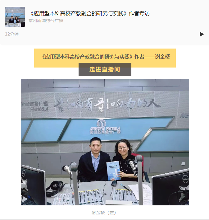 常州新闻综合广播 1034朗读者 | 《应用型本科高校产教融合的研究与实践》作者专访——谢金楼