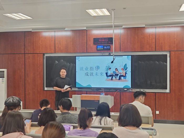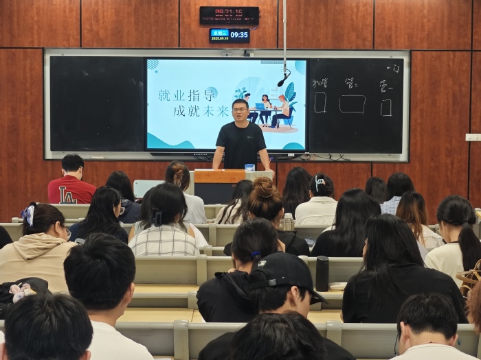 郭峥春围绕就业形势与就业准备两大核心主题展开深入讲解。他通过详实的数据和生动的案例,剖析当前复杂多变的就业市场环境,让同学们清晰认识到就业面临的机遇与挑战。同时,他还从提升专业技能、积累实践经验、培养职业素养等多个维度,为同学们提供了全面且实用的就业准备建议,引导大家树立正确的就业观念。李成则聚焦就业协议签订、补办以及毕业去向落实等实务工作进行详细解读,强调就业协议的重要性、签订流程以及注意事项,并介绍毕业去向登记的相关政策和操作方法,帮助同学们顺利完成毕业手续。