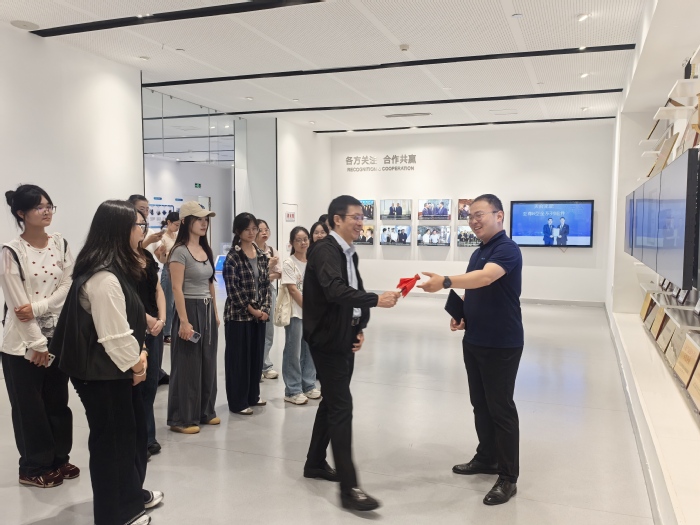 在交流研讨环节,双方围绕数智供应链的发展趋势、校企合作的多元模式等议题展开深入探讨。公司党委书记谢金楼指出,此次调研是推动课堂教学与行业实践深度融合的重要举措;公司将持续拓展与行业头部企业的合作关系,积极将前沿技术融入课程体系,不断提升相关专业人才的培养质量。天合光能全球智能制造平台负责人顾志峰表示,天合光能高度重视与高校的协同育人工作,期待未来在产业公司建设、产教融合教学团队和课程共建等方面推进实质性合作。