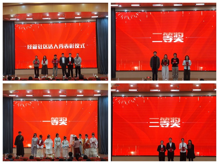 随后上演的社区达人秀环节将整场活动推向高潮。参赛同学们通过舞蹈、歌曲、朗诵等多种艺术形式,充分展现了经管学子多才多艺、积极向上的精神风貌。经评委综合评定,由胡子轩、盛慧琳、周冰冰等同学共同演绎的汉服走秀节目《一览芳华》凭借其富有感染力的舞台表现,荣获本届达人秀一等奖。此外,另有多个优质节目分获二、三等奖及参与奖。